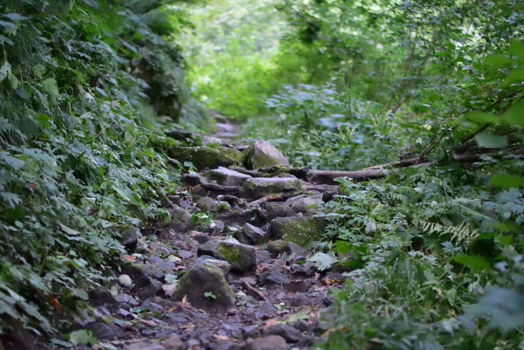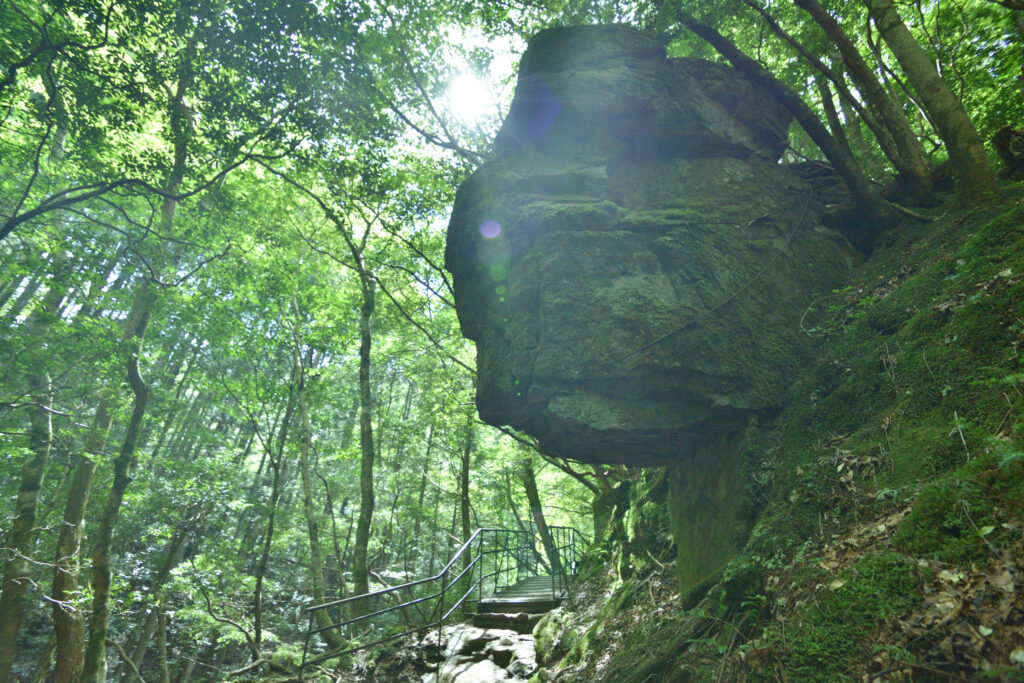 登り始めてみると、思っていたほど道は険しくはありませんでした(当社比)。登山客が多いためか、道はある程度整備されていて所々には休憩するためのスペースやベンチなどが設置されています。自分より大きいような大岩をよじ登ったりだとか、設置されたロープに掴まりながら岸壁を渡っていったりだとか、そんな場所は無いので初心者でも多少体力があれば登るのは難しくないと思います。実際、来ていた登山客の中にはベビーカーのような子供を背負うための装備を身に着け、そこに子供を乗せた状態で軽々登っていく猛者なんかもいました。