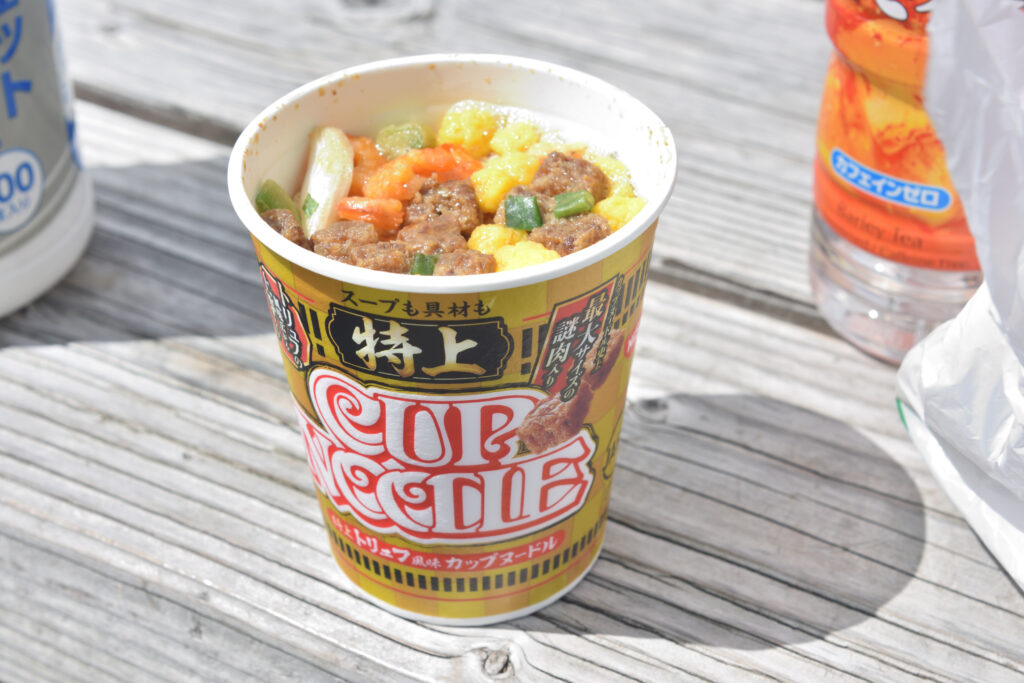 山頂の山小屋ですが、想像の5倍くらい広かったです。宿泊用の建物が何棟もあり、食事付きの宿泊プランで予約していた人たち用の食堂もあるという充実っぷりでした。私たちは素泊まりのプランで予約しており、食料を持参するようにと言われていましたので、自前でカップヌードルとお湯を沸かすためのキャンプ用のガスコンロを持って来ていました。しかし、山小屋には売店があり、なんとそこでカップヌードルは購入可能だったということが判明しました。お湯もそこで入れてもらえるのでわざわざ持ってきた調理セットは全然不要でした。