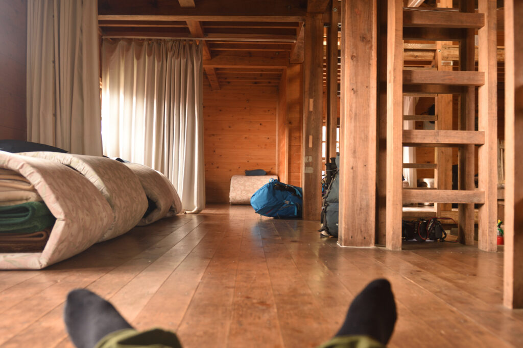 これまで登山は何度かしてきましたが、山小屋で1泊するのは今回が初めてです。とは言っても布団がある以外には何もないので特にすることはないんですけどね。前日の睡眠不足と登山の疲れもあってとりあえず夕方まで昼寝しました。