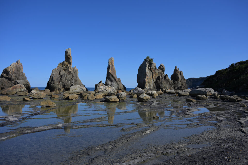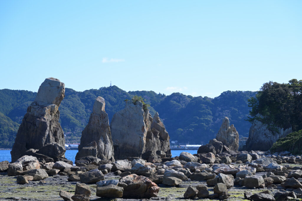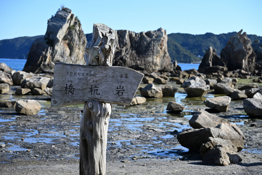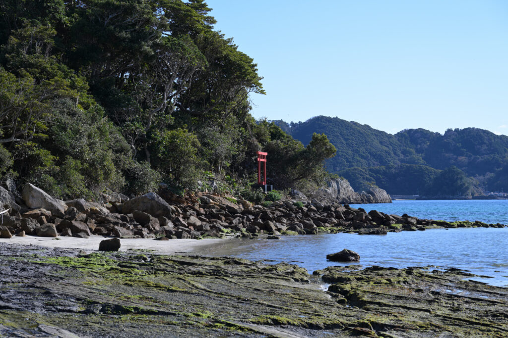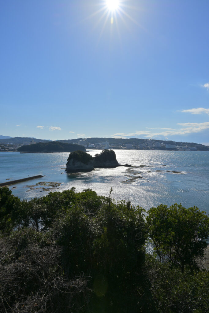 火祭りは夕方から開始だったのでそれまでは和歌山の観光地をぶらぶらと巡りならが時間をつぶしていました。今回は海沿いルートで目的地へ向かったので主に海沿いの観光地を巡っています。天気が良く空が青々としていたので海もめちゃくちゃ青くてキレイに見えます。これだけ青いと冬なんですけどまるで夏のように見えますね。それと時間帯的に干潮のときだったらしく、満潮時には行けないような場所まで歩いて行くことができました。橋杭岩の先にある島なんかは鳥居が建っており、まるでRPGの隠しエリアのようです。ちなみに今使ってるスマートウォッチに満潮干潮の時間帯を表示する機能があるんですけど3年間ほど付けてて今回初めてその機能が役に立ちました。