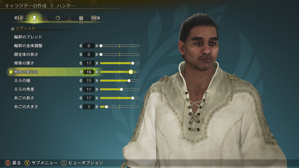 うん、まあ正直あんまり似てないかな。なんというか縄文人とダウンタウンの浜田を足して2で割ったような感じですね。キャラクリ真面目にやったの初めてなので許してください。