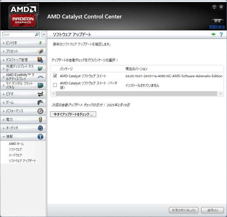 そんな古すぎてカビ臭そうなドライバには別れを告げてとっとと最新のドライバに更新しました。