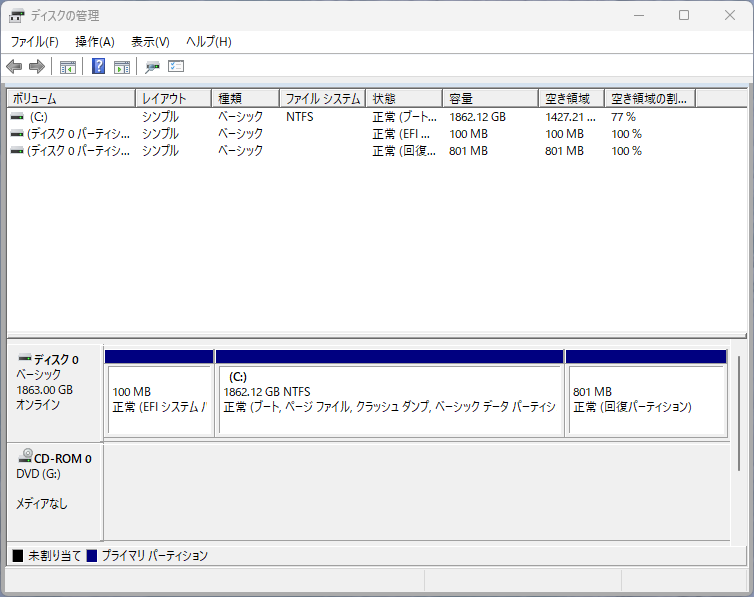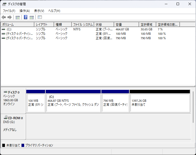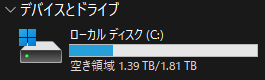ちゃんと未割り当ての領域がCドライブに割り当てられています。