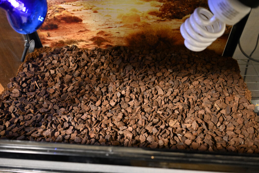 次に入れるのがこちら、たくさんのYouTuberやブロガーがおすすめしていたバークチップです。この床材は固いのでリクガメが歩きやすい環境を作れて、粒も大きいため誤飲の心配もないのが良いらしいです。その代わり保温性や保湿性がないのでそれを補うために土系の床材と併せて使うと良い感じなわけです(知らんけど)。